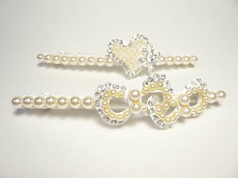 りぼんとハートのデザインのスリムタイプのバレッタを2本セットにしました。 | ||