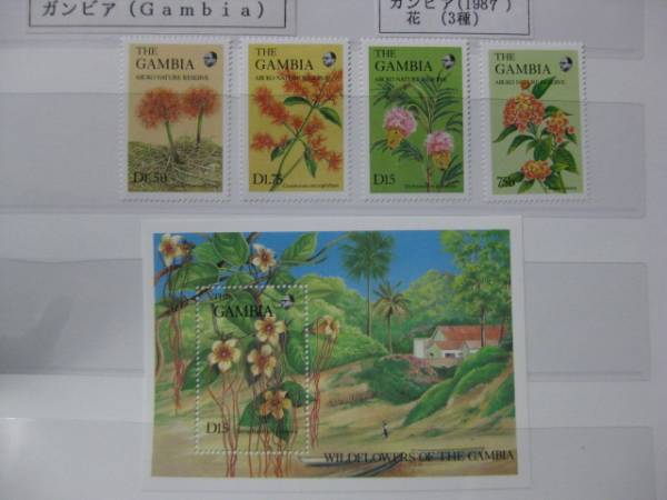 花切手№28 ガンビア 1987年 花 4種完+小型シート 美品