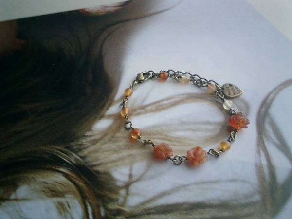 秋の美術館・・シリーズです♪ロマンチックなカーネリアンのブレスレットです♪小粒の丸玉や薔薇のカーネリアンが大人のロマンチックしています♪♪4ミリの丸玉のカーネリアンに8ミリの薔薇のカーネリアンを合わせて可憐な表情です♪長さは全長23センチ位で調節自由です♪お揃いのネックレスも出品しています♪♪シンプルで長く着けていただけるデザインを考えて作りました♪ハンドメイドをご理解頂いてノークレーム、ノーリターンでお願いします