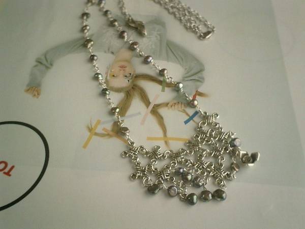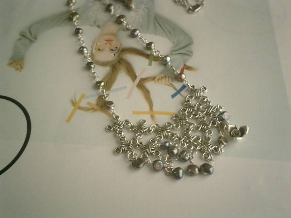 ロゼッタのおめかし・・シリーズです♪センチメンタルな薔薇・・シックなライトグレーの淡水パールのネックレスです♪キュートなデザインチャームとカレンシルバーの薔薇を合わせて可憐な表情です♪淡水パールは6×4ミリ位のバロックです♪カレンシルバーの薔薇は10ミリ位です♪長さは全長70センチ位で調節自由です♪チョーカー風に着けられても素敵です♪お揃いのブレスレットも出品しています♪♪シンプルで長く着けていただけるデザインを考えて作りました♪ハンドメイドをご理解頂いてノークレーム、ノーリターンでお願いします