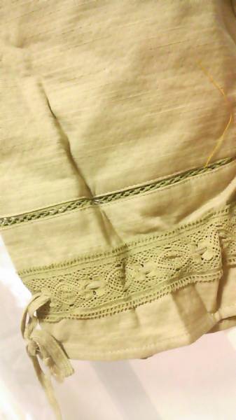 ◆スソ絞れるリボン付でラインを変えれます♪裾カギ編みレース付♪ナチュラル可愛い半端丈パンツ