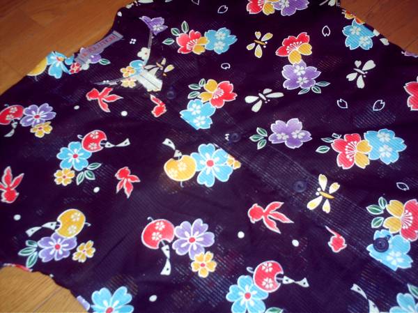 生地:綿(ゆかた地・薄手)100%  若干透けて見えます。