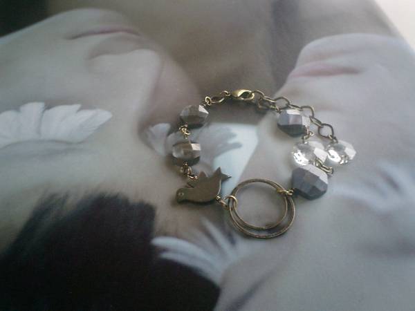 私らしさのスパイス・・シリーズです♪グレーの小鳥さん・・シックなグレーシェルとスワロのブレスレットです♪繊細なカットが美しいグレーシェルは11ミリと13ミリの六角形カットです♪スワロは10ミリと12ミリのヘキサゴンです♪シェルの小鳥さんやデザインチェーンを合わせてアートな表情です♪長さは全長23センチ位で調節自由です♪♪お揃いのネックレスやピアスも出品しています♪シンプルで飽きのこないいつまでも着けられるデザインを考えて作りました!ハンドメイドをご理解頂いてノークレーム、ノーリターンでお願いします