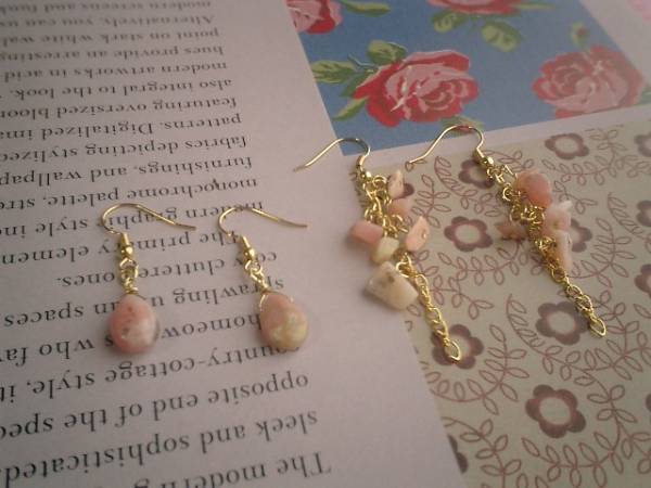 私的・乙女心・・シリーズです♪やさしいピンク・・ロマンチックなピンクオパールのピアス2セットです♪デザイン違いのペア2組です♪深みのあるシックなお色が大人のロマンチックしています♪4ミリから8ミリ位までのさざれのピンクオパールのピアスは全長6センチ位です♪12×9ミリ位のフラットドロップのピンクオパールのピアスは全長4センチ位です♪イヤリングにも変更出来ます♪それぞれ単品でも出品しています♪お揃いのネックレスやブレスレットも出品しています♪♪シンプルでいつまでも着けられるデザインを考えて作りました!ハンドメイドをご理解頂いてノークレーム、ノーリターンでお願いします