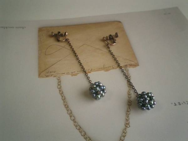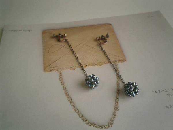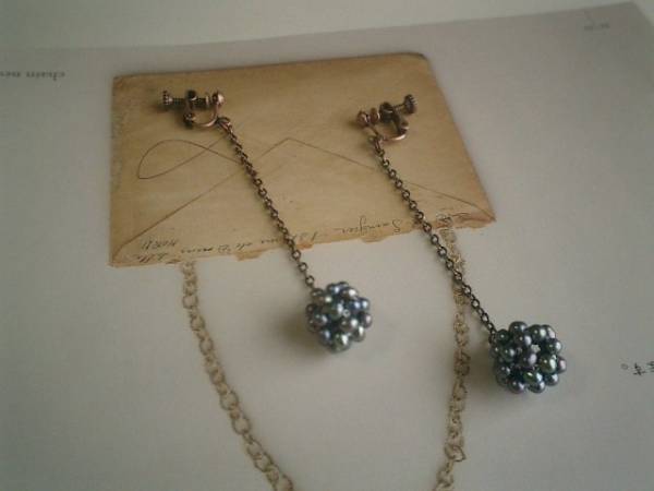 ジャンヌの手仕事・・シリーズです♪小さな幸せ・・シックなパープルグレーの淡水パール玉のイヤリングです♪ペア1組です♪パール玉は15ミリ位です♪繊細なチェーンを合わせて可憐な表情です♪長さは全長8センチ位です♪ピアスにも変更出来ます♪お揃いのネックレスも出品しています♪♪シンプルで飽きのこないいつまでも着けられるデザインを考えて作りました!ハンドメイドをご理解頂いてノークレーム、ノーリターンでお願いします