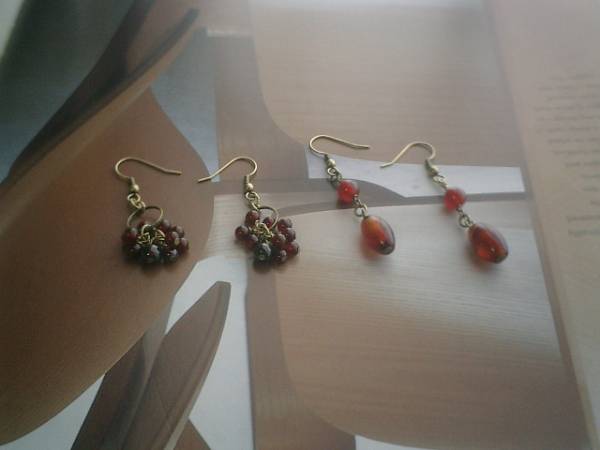 秋色・デッサン・・シリーズです♪大切な時間・・深い赤でまとめたシックなピアス2組です♪デザイン違いのペア2組です♪ガーネットとカーネリアンのダークレッド、オレンジのニュアンスのある色を集めて秋のロマンチックしています♪ガーネットは4ミリ、6ミリの丸玉、カーネリアンは6ミリの丸玉と12×8ミリのナツメ型です♪長さはガーネットのペアが全長4センチです♪カーネリアンのペアは全長5・5センチ位です♪イヤリングにも変更出来ます♪それぞれ単品でも出品しています♪お揃いのネックレスやブレスレットも出品しています♪シンプルで合わせやすいデザインを考えて作りました♪ハンドメイドをご理解いただいてノーリターン、ノークレームでお願いします♪