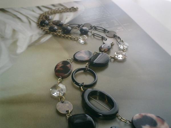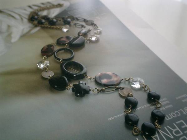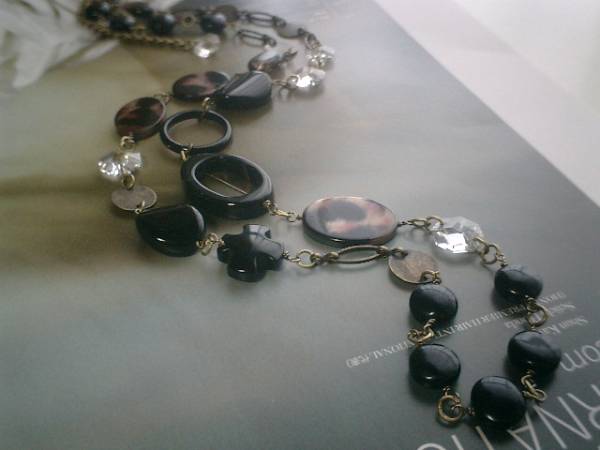 ミニシアターの余韻・・シリーズです♪赤い靴の少女・・シックなオニキスとスワロのネックレスです♪大人仕様のデザインです♪オニキスは10ミリのコイン、15ミリのクロス、22ミリのリング、30×20ミリのオーバルリング、13×18ミリのオーバルなどデザイン違い、大きさ違いです♪豹柄の25×18ミリ、15×20ミリのフラットオーバルのシェルやスワロのクリスタルのヘキサゴンやスモーキークォーツのオーバル、デザインチェーンなどを合わせてキュートモダンな表情です♪長さは100センチ位で調節自由です♪2連にされても素敵です♪同じデザインの長さ違いのネックレスやお揃いのネックレスやブレスレットやピアスも出品しています♪♪シンプルで飽きのこないいつまでも着けられるデザインを考えて作りました!ハンドメイドをご理解頂いてノークレーム、ノーリターンでお願いします