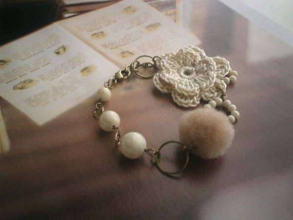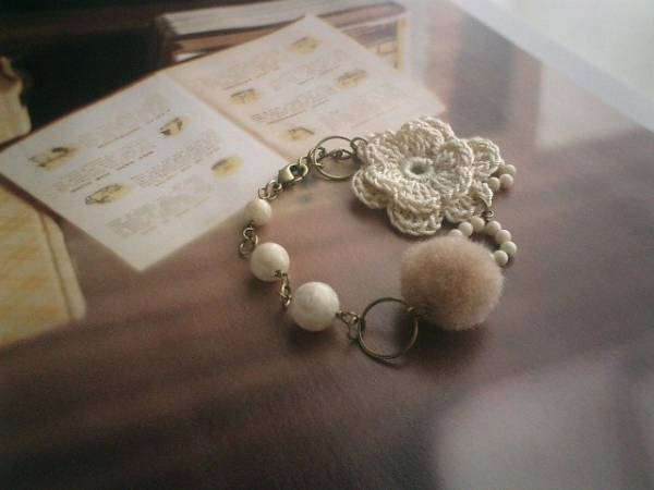 ベーシック・スタイル・・シリーズです♪ガーリッシュ気分で・・可憐な素材を集めたブレスレットです♪ソープストーンやアクリルボールや綿レースのお花で少女っぽい雰囲気で作りました。ソープストーンは6ミリ、8ミリ、10ミリの丸玉や3ミリ玉のリングです♪モーヴピンクのアクリル玉は15ミリ位、綿レースのお花は35ミリ位です♪やさしいお色でまとめてふんわりガーリッシュ気分です♪長さは全長23センチ位で調節自由です♪お揃いのネックレスも出品しています♪いつまでも着けられるデザインを考えて作りました♪ハンドメイドをご理解頂いてノークレーム、ノーリターンでお願いします |