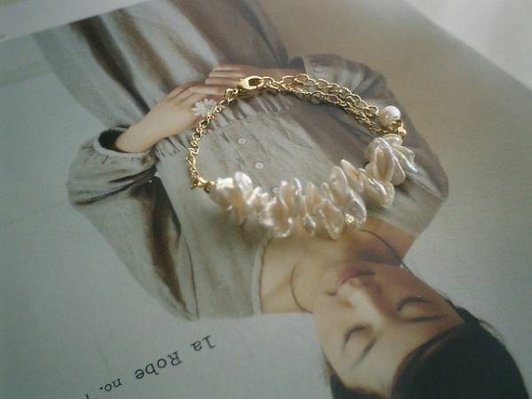 センチメンタル気分・・シリーズです♪やさしい人に・・可憐な淡水パールのブレスレットです♪オフホワイトやライトベージュの芥子パールのチップは7ミリから13ミリ位です♪やさしいお色が大人のロマンチックしています♪長さは23センチ位で調節自由です♪♪お揃いのブレスレットやネックレスも出品しています♪♪シンプルで飽きのこないいつまでも着けられるデザインを考えて作りました♪ハンドメイドをご理解頂いてノークレーム、ノーリターンでお願いします