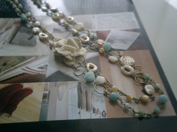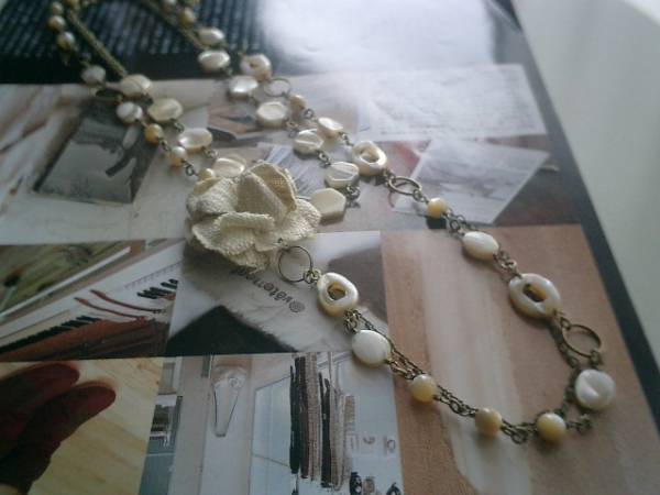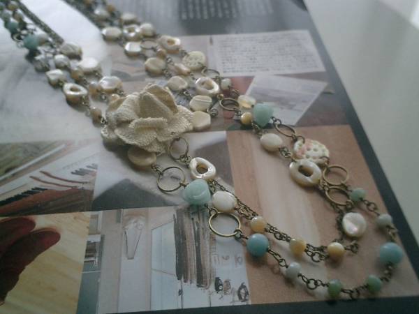 薔薇の帽子箱・・シリーズです♪巴里模様・・大人色でまとめたロマンチックなネックレス3本セットです♪画像のように色々な組み合わせで楽しんでいただけます♪シックなオフベージュのマザーオブパールは6ミリ、8ミリの丸玉、10ミリ、14ミリのオーバルリング、8ミリ、10ミリ、12ミリのオーバル、12ミリのヘキサゴンなど大きさ違い、デザイン違いです♪水色やグレー、グリーンなど個性的な色が可憐なアマゾナイトは6ミリのボタンや8ミリの丸玉、12ミリの薔薇です♪レース模様のような透かしシェルやベージュのコサージュを合わせてアンティークモダンな表情です♪長さはコサージュとマザーオブパールのネックレスが全長88センチ位で調節自由です♪2連にされても素敵です♪12ミリのヘキサゴンのマザーオブパールのネックレスは全長60センチ位で調節自由です♪アマゾナイトの薔薇とレースシェルのネックレスは全長90センチ位で調節自由です♪2連にされても可愛いです♪それぞれ単品でも出品しています♪お揃いのブレスレットも出品しています♪♪シンプルで飽きのこないいつまでも着けられるデザインを考えて作りました!ハンドメイドをご理解頂いてノークレーム、ノーリターンでお願いします