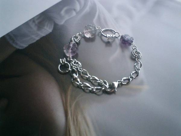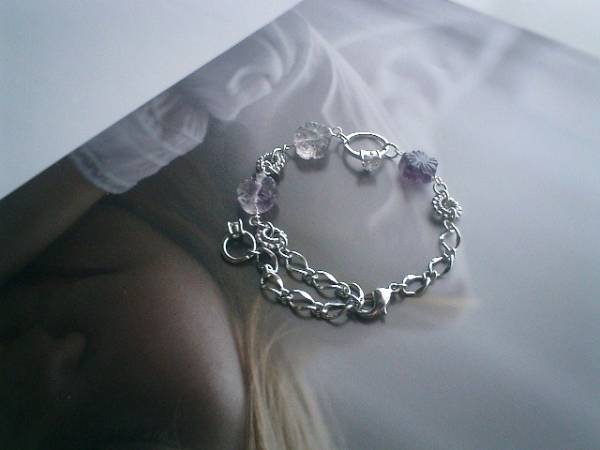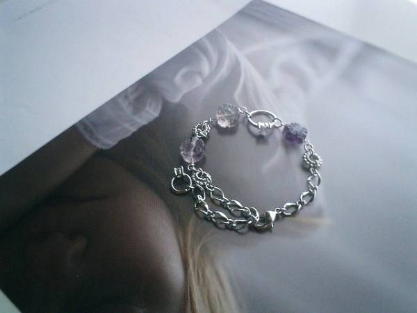 薔薇の帽子箱・・シリーズです♪アリスを探して・・可憐なフローライトのブレスレットです♪♪10ミリ位のお花のフローライトにジルコニアのリングやデザインリングを合わせてロマンチックな表情です♪長さは全長23センチ位で調節自由です♪お揃いのネックレスやイヤリングも出品しています♪♪シンプルで飽きのこないいつまでも着けられるデザインを考えて作りました!ハンドメイドをご理解頂いてノークレーム、ノーリターンでお願いします