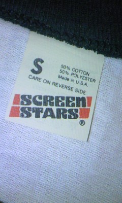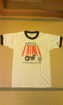 渋谷の老舗アメカジショップのバックドロップのリンガーTシャツです。メイドインUSA製のヴィンテージデッドストックボディーを使用しチョッパーのプリントを施したバックドロップらしいアイテムで加工には無い微妙な点状のシミや黄ばみがリアルな背景を物語っております。バックドロップサイドで状態の良いデッドストックボディーを使用しておりますので1点1点風合いも異なり数も多く制作されず、経年変化による黄ばみやシミが苦手な方にはお勧めは出来兼ねる商品です。逆に言えばこれ程リアルな古着感覚の新品は無いと思います。(_ _;)