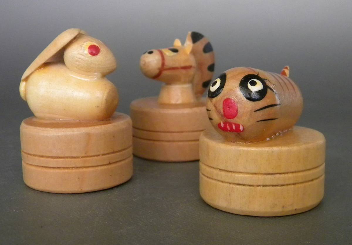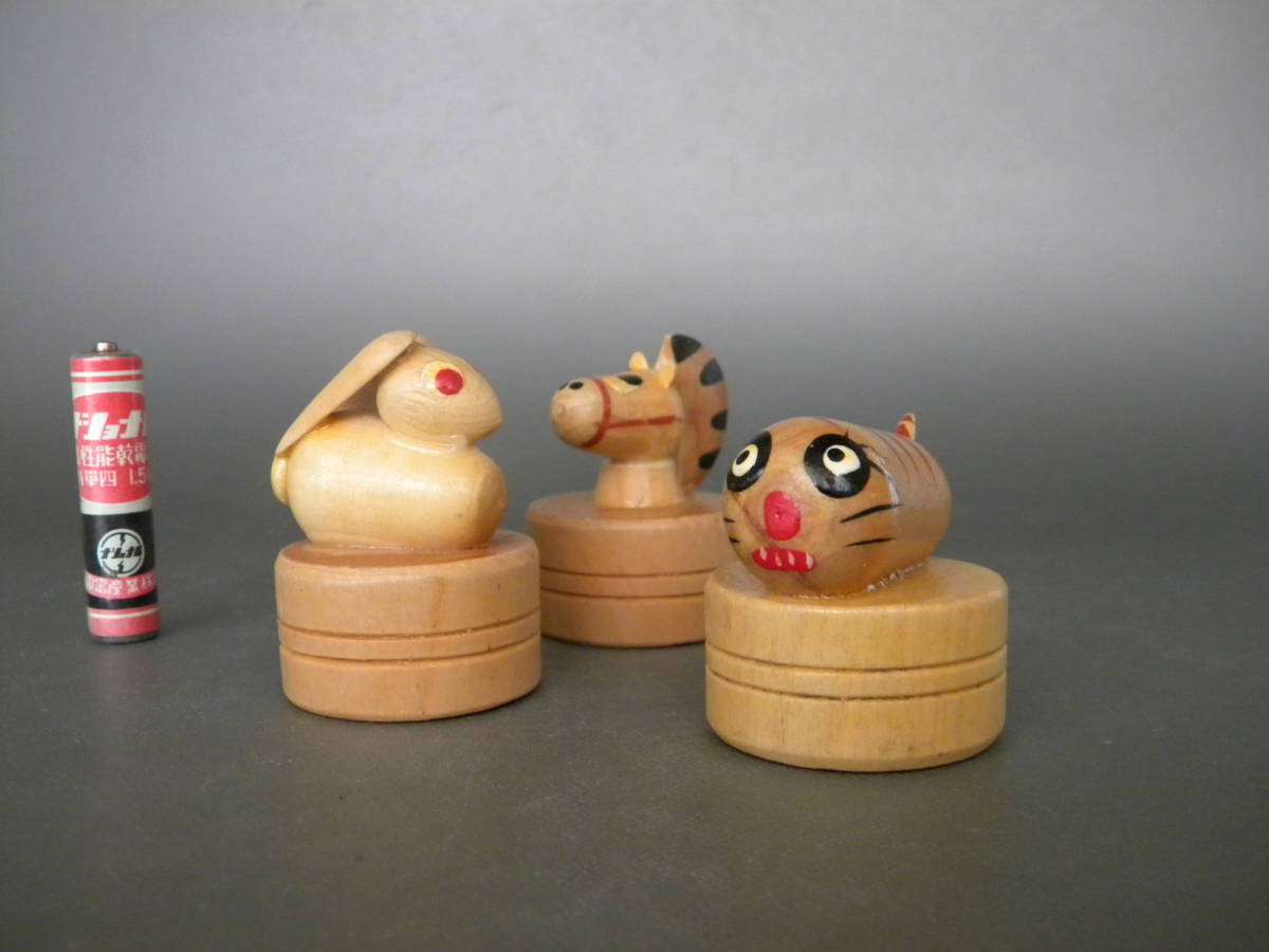 当時物 ★★木製 鉛筆削り アニマルシャープナー !! 動物 ウサギ ウマ トラ こけし エンピツケズリ「定形外/LP可★★未使用 デッドストック