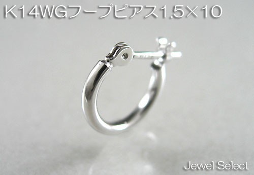 K14WG ホワイトゴールド 1.5×10 フープピアス 片耳用