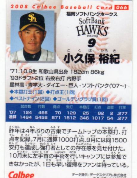 カルビー プロ野球08 066 小久保 裕紀/ソフトバンクホーク