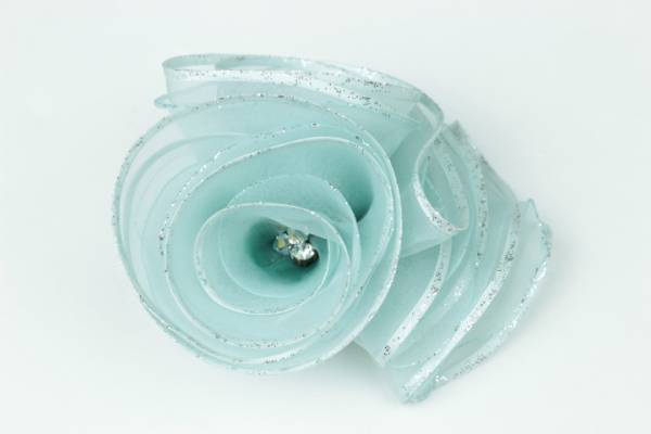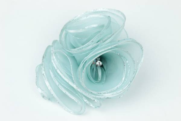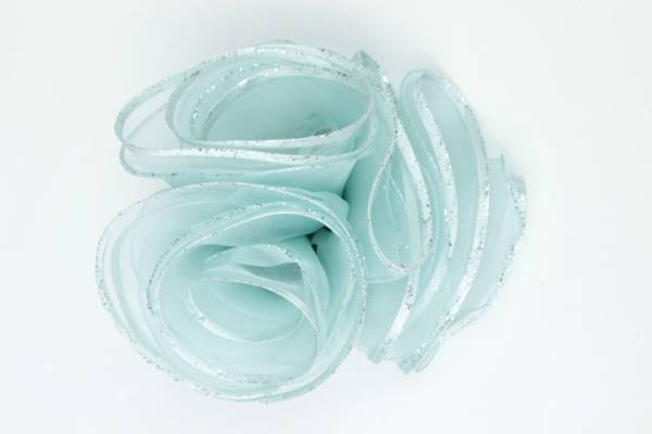 落ちついた水色系のオーガンジー、縁に銀ラメ付いています。
