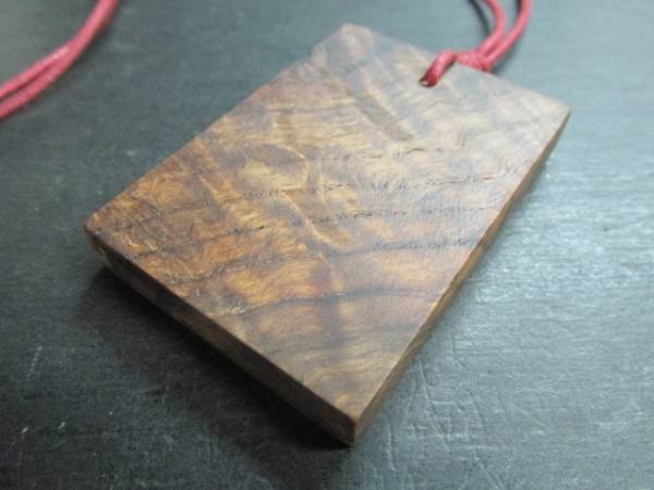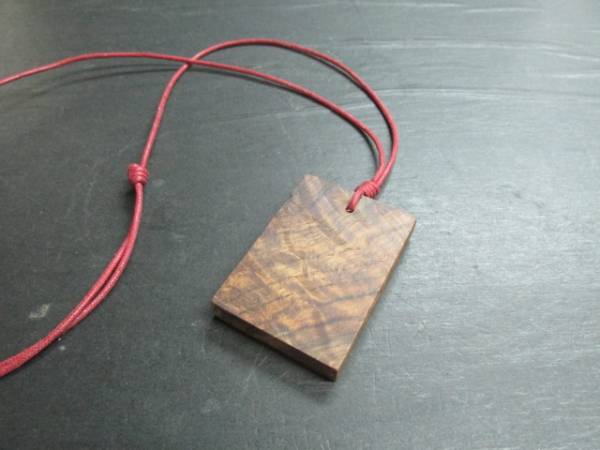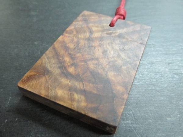 それは山深き奥会津の山中で偶然発見された楢の木の老木。直径1メートルを超える空前絶後の瘤杢は、中心部をウロ化させ黒々とした光を放っていました。これほどの瘤杢を見るのは初めての経験で今回その一部を入手することが出来ました。ある種の畏怖を感じさせるこの瘤杢本体の大きさは、推して知るべし。入手した材を持ち帰り、木取りすると見事な文様が現れました。その又とない取って置きの楢の瘤目を使ってペンダントを作ってみました。その杢の凄さには舌を巻きます。