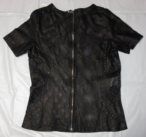8 エイト イタリア製・レディース・パンチングデザイン レザー半袖カットソーUSEDです