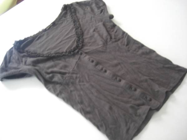 美品38 ルスーク フリルカットソー茶