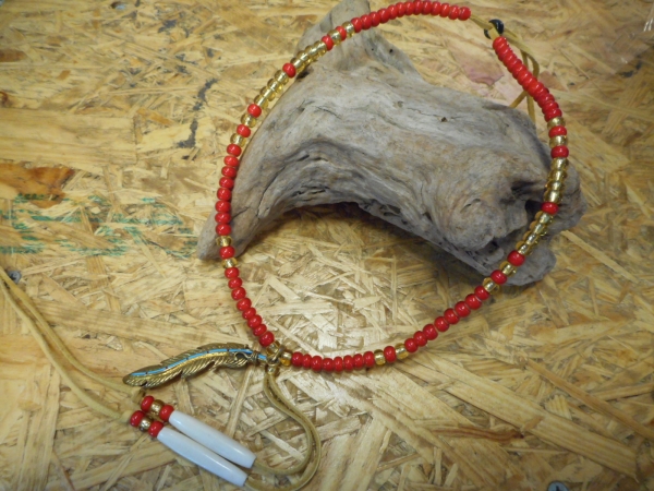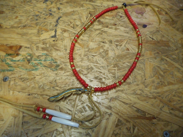 カッコイイ オシャレ豪華☆ルームミラーチャーム赤ビーズ☆真鍮フェザー検索 インディアン バックミラー 飾り ネイティブ