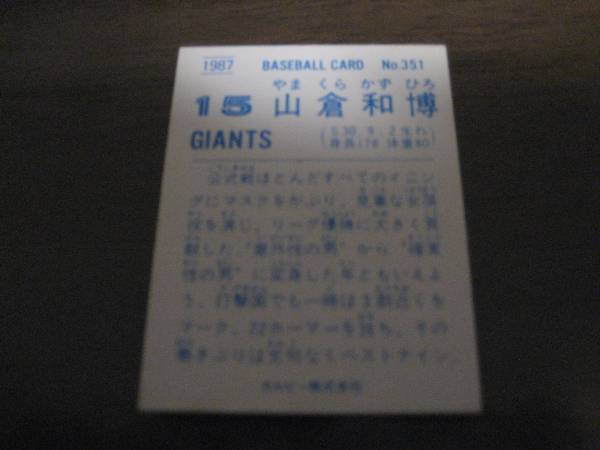 | ■カルビー1987年/No351山倉和博/巨人 | ||
