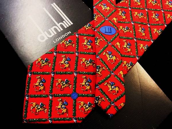 ☆*:.*:K0354美品ダンヒルdロゴ入【乗馬・馬】動物ネクタイ