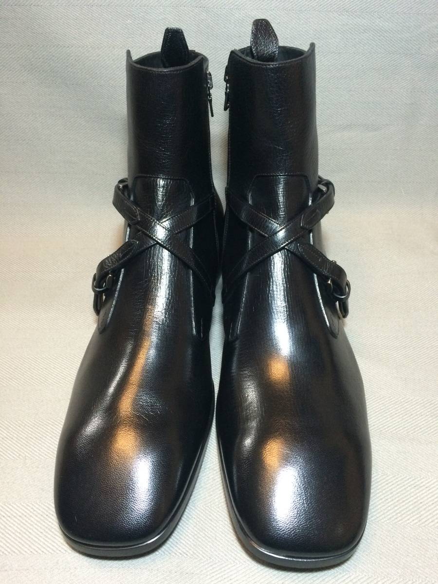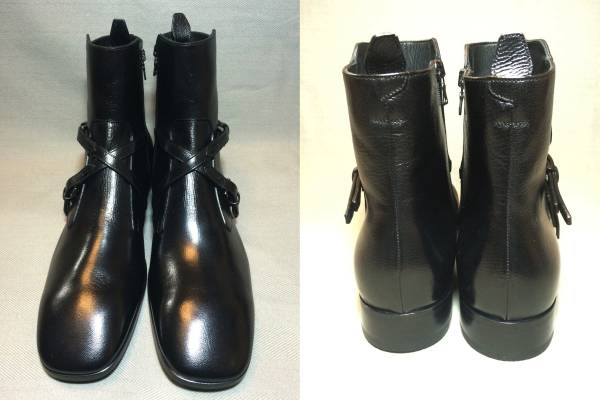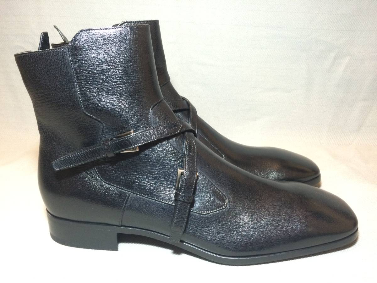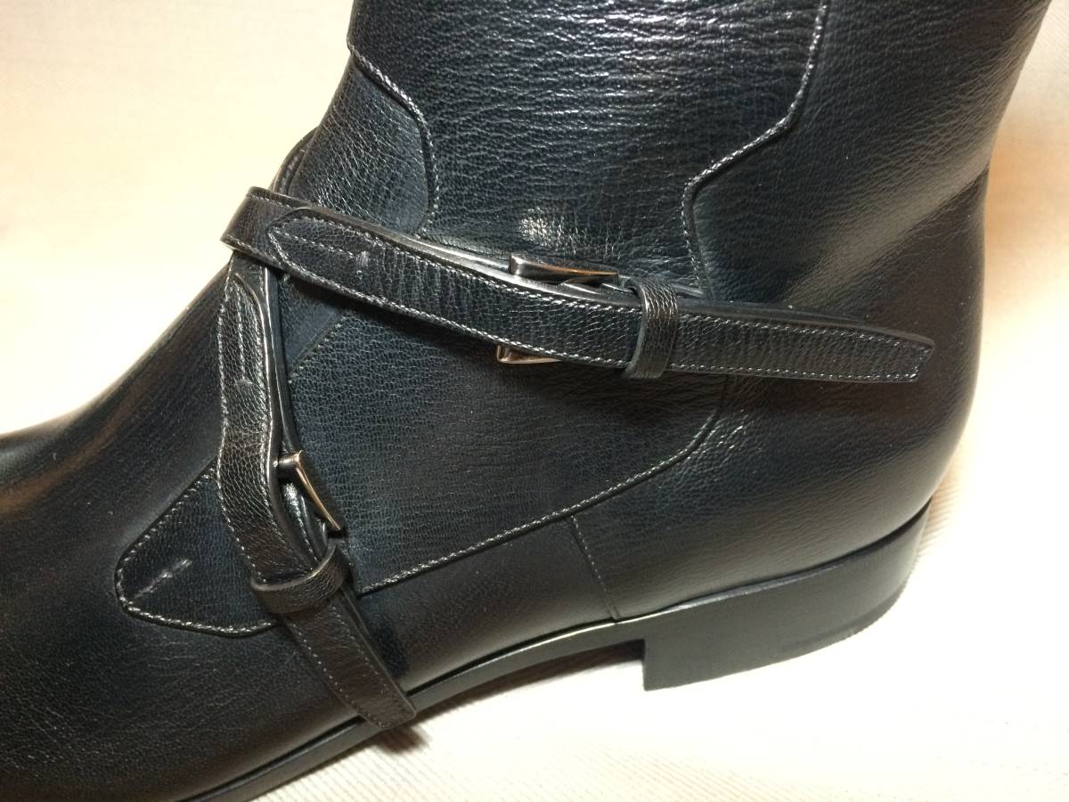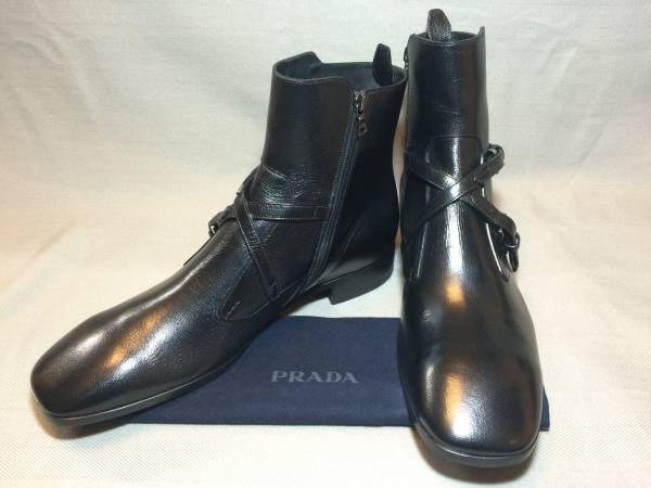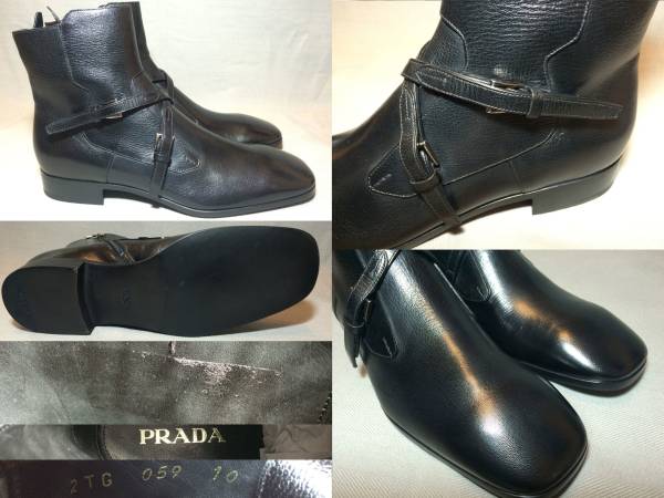 新品 プラダ コレクション ベルト レザー ブーツ 10 黒 革靴 シューズ PRADA ブラック