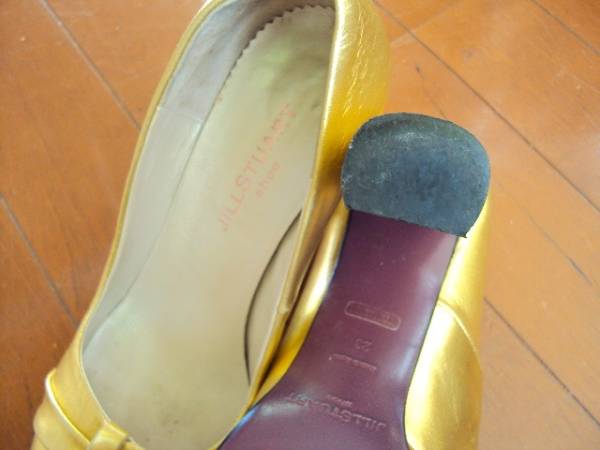 JILL STUARTジルスチュアートのパンプスです。サイズは23cmです。ヒール高さ9cm位です。お色はゴールド系です。2~3度使用ですが擦れはあります。箱はありません。傷など素人目なので見逃しなどあるかもしれません。気づかない見落としはご容赦くださいませ。使用品ですので神経質な方は御遠慮下さいね。その他いろいろ出品していますので見て下さいね。必ず自己紹介も御覧下さいね