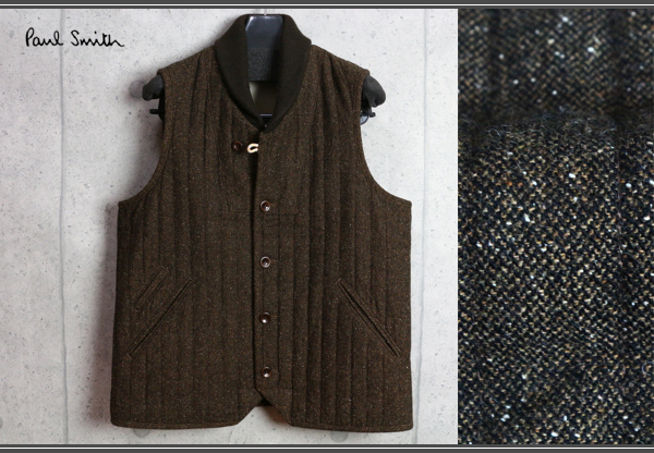 新品ポールスミス秋冬ネップツイード中綿ウールベストM茶3.8万
