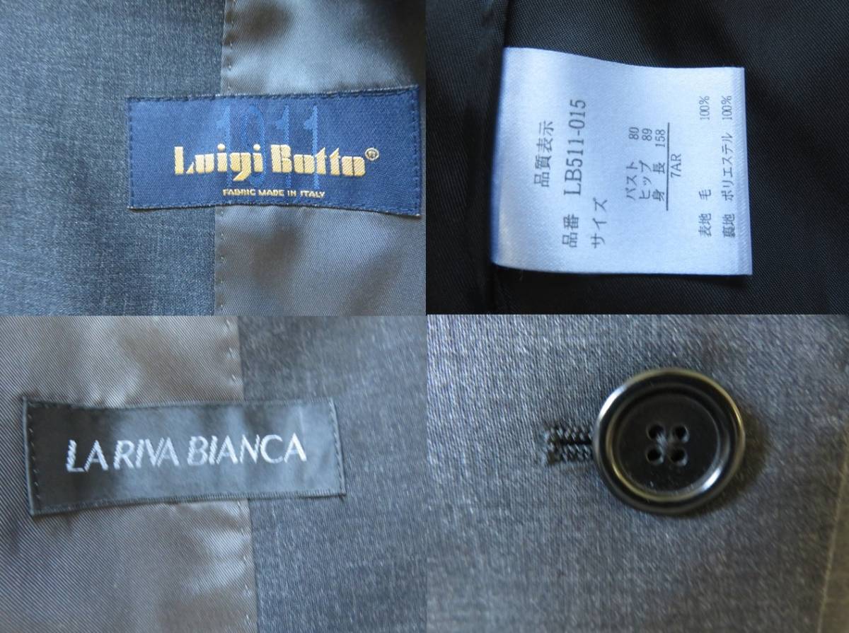■綺麗 上質美品 イタリー製【 Luigibotto 】ルイジボット【 la riva bianca 】ラリバビアンカ 高級 ウール スーツ 7号 S グレー s885