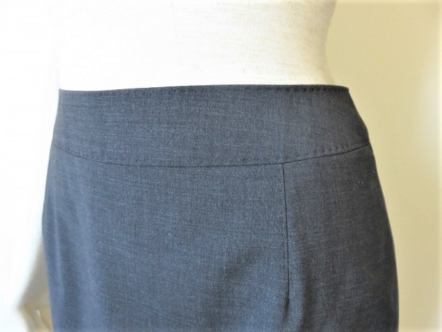 スカートはバックでファスナー、ホック止め、バックセンタースリット、総裏地、表地に影響はありませんが、裾上げが手縫いの箇所があります。