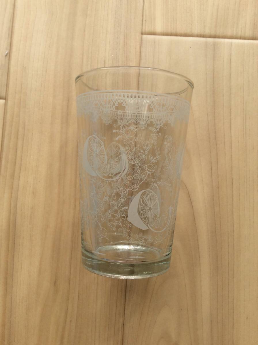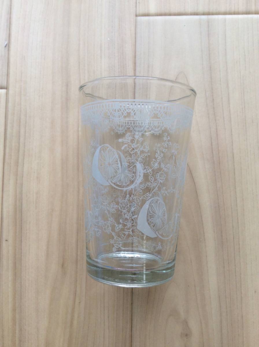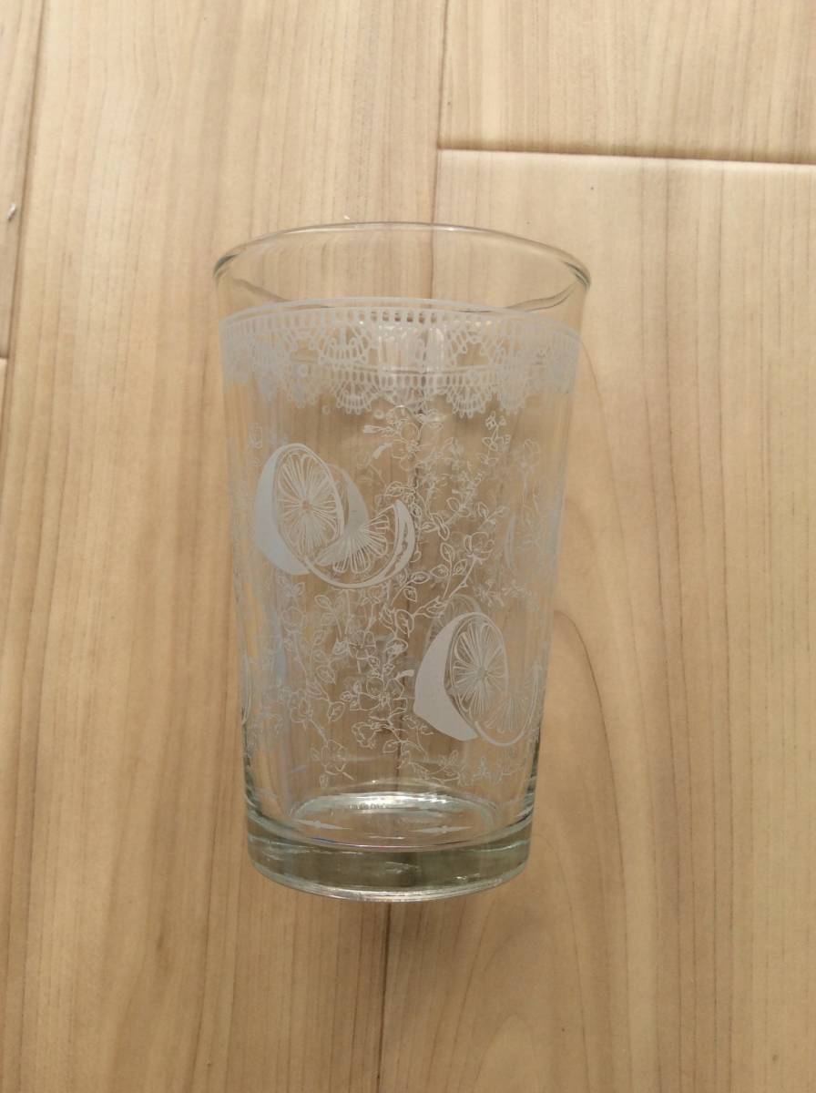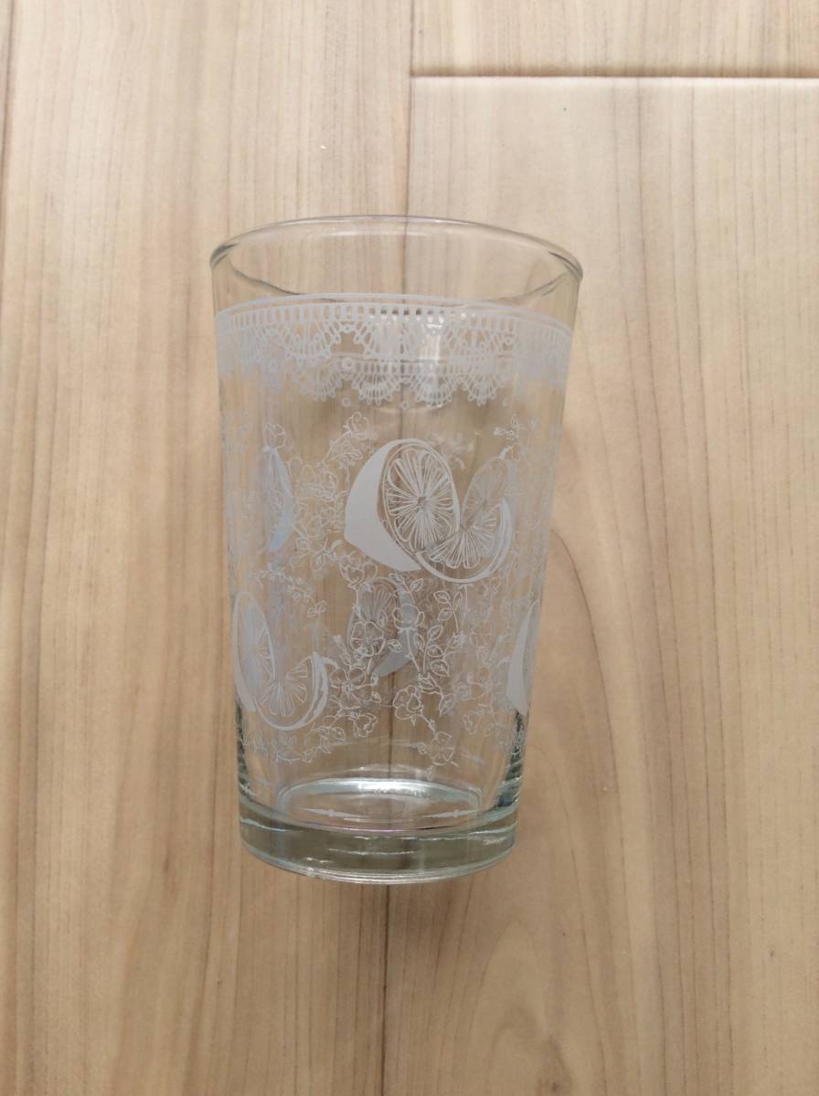 雑貨屋さんで購入しました、レモン柄グラスです。