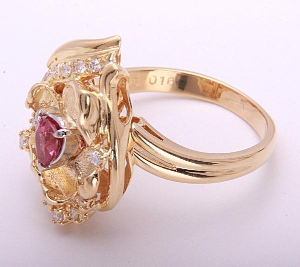 k18★天然ルビー0.55ct+ダイアモンドデザインリングです。