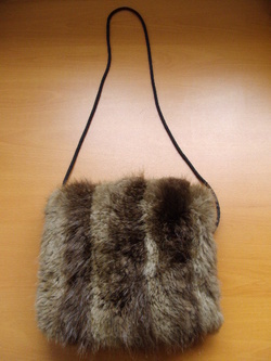 • ナチュラルブラウン・ビーバー毛皮マフ。ストラップ、ファスナーつきポケットのついた、暖かいハンドマフです。