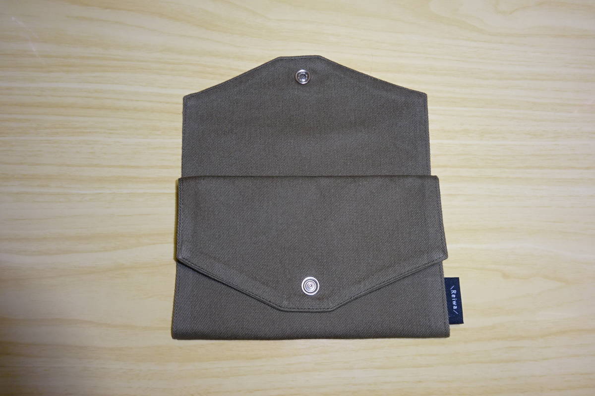 マスクケース 17×17㎝ デニム カーキ色 フラットタイプ 刺繍タグ付き マスク入れ 仮置き ハンドメイド