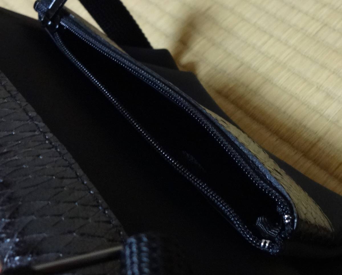 メインの入り口は裏側上部から3㎝下がったところにチャックつきであります。