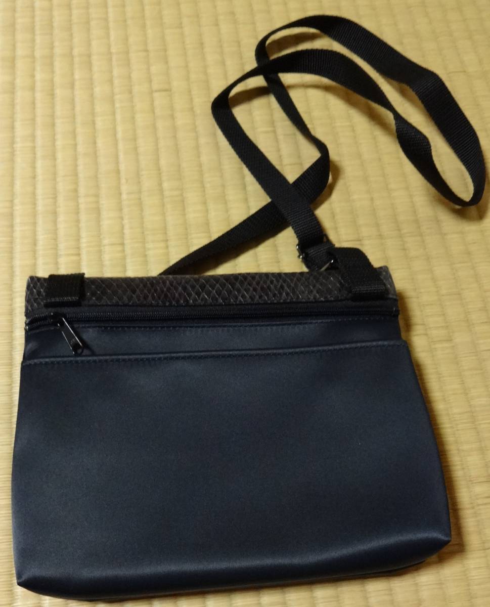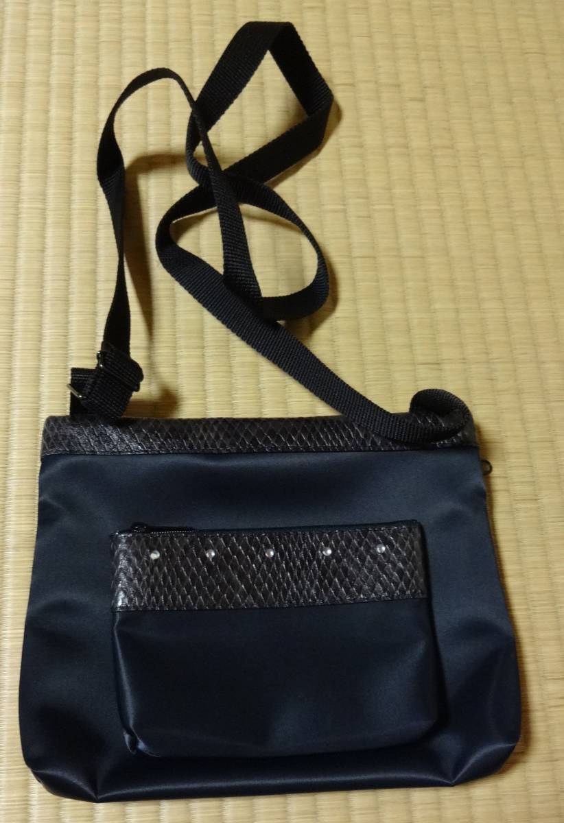 青山のブティックで購入した軽くて黒いショルダーバッグ(ポシェット)アトリエのぶ、海外旅行にハンカチ、ティッシュ、財布入れに、