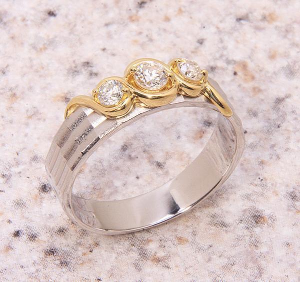 ダイアモンドが3石で0.32ct輝くデザインリングです。