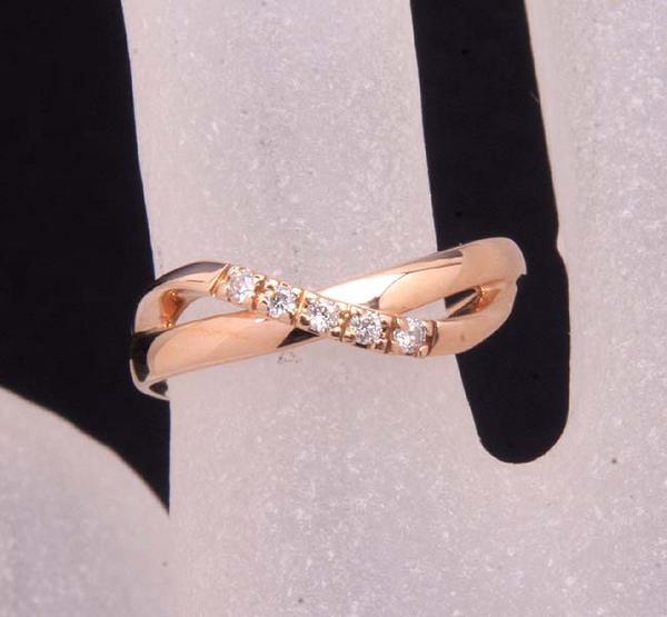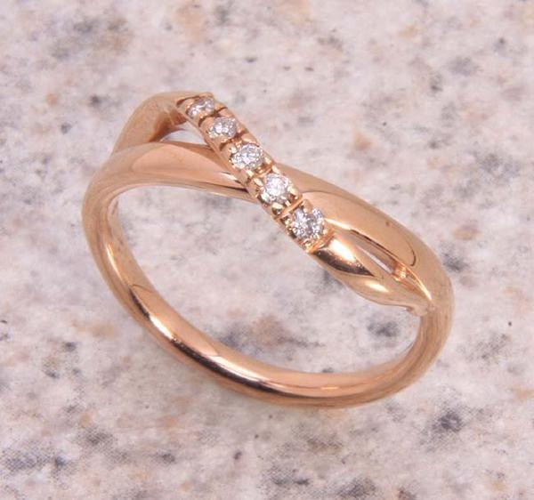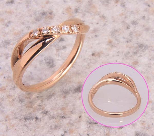 ダイアが5石留められた4℃のデザインリングです。