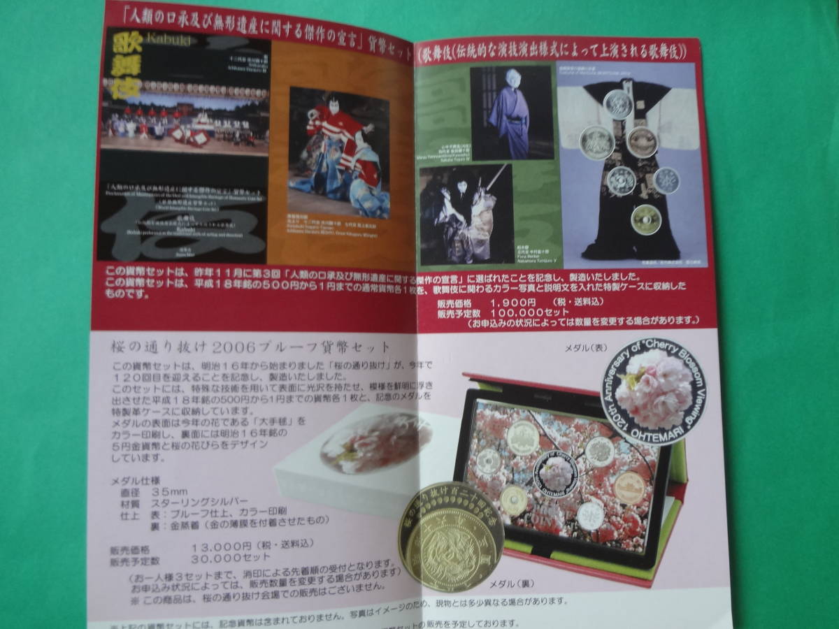 『世界無形遺産貨幣セット 歌舞伎(平成18年銘 )』 1セット 造幣局通信販売案内リーフレット付