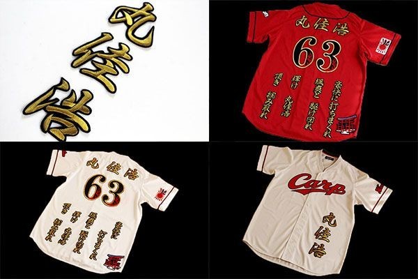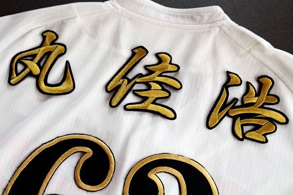 送料無料 丸 佳浩 ネーム 刺繍 (行金) ワッペン 巨人 ジャイアンツ 広島 カープ 応援歌 ユニホーム に