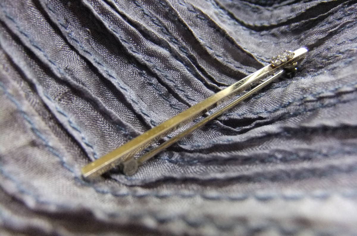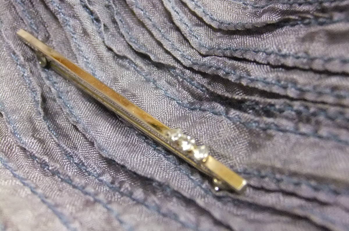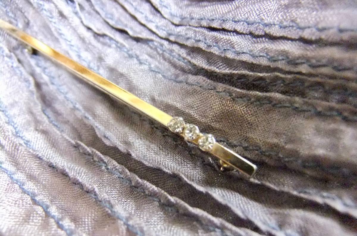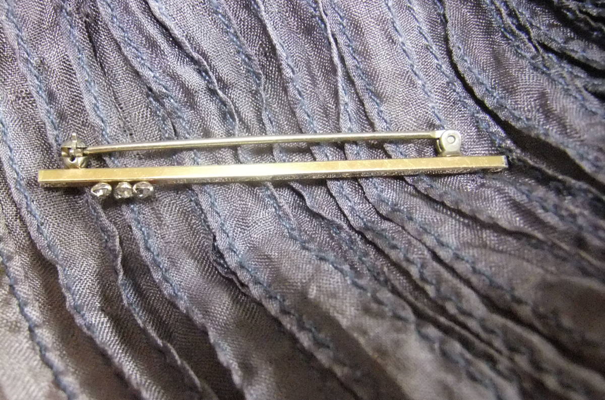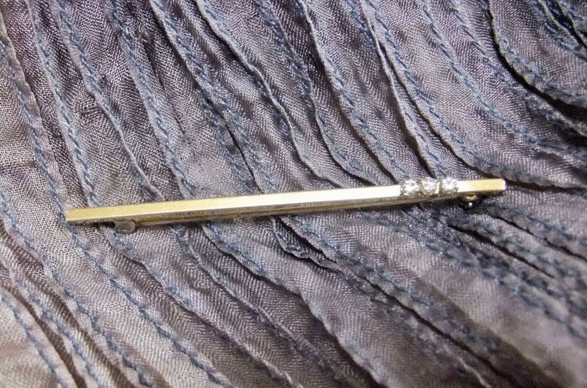KREMENTZ クレメンツ:3粒のクリアストーン、バー状ブローチ
