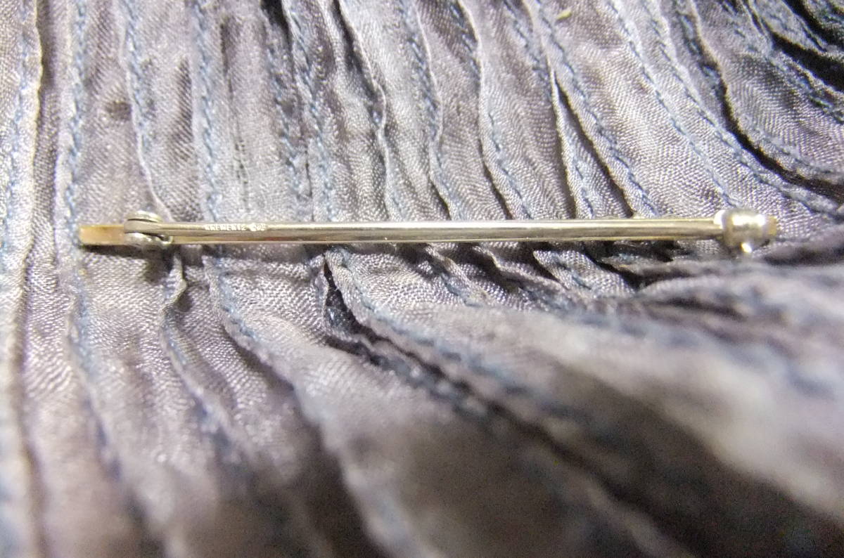 KREMENTZ  クレメンツ(1866年~)刻印入り、3粒のクリアストーン、バー状ブローチ。