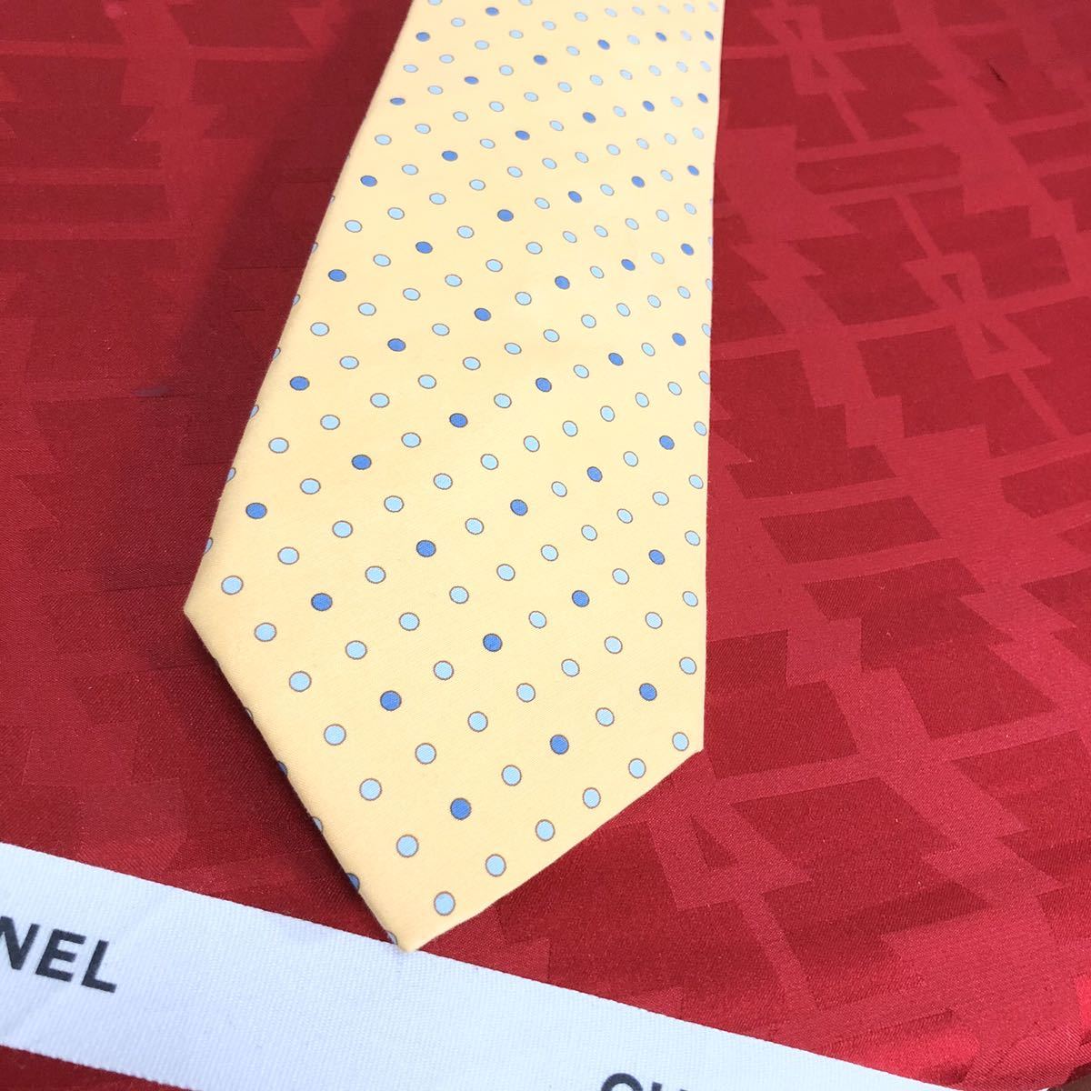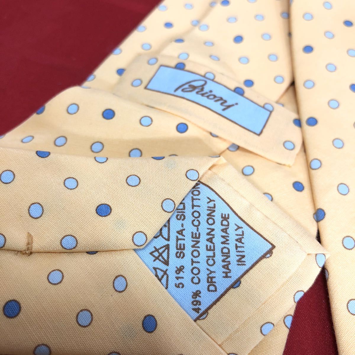イタリアの高級紳士服ブランド、ブリオーニのネクタイでお洒落な2色のドットとカラーが印象的なアイテムになります。