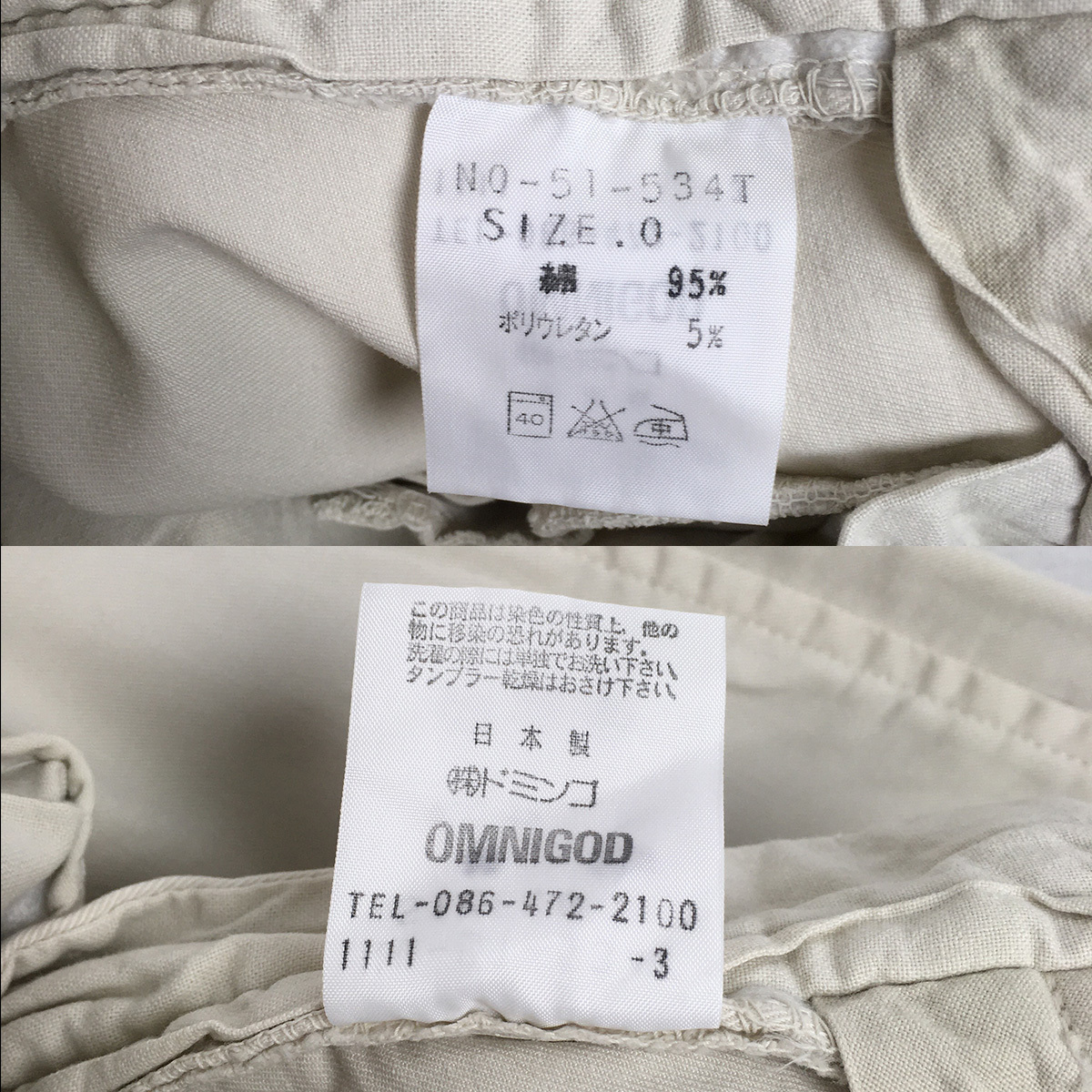 OMNIGOD オムニゴッド 51-534T コンパクトストレッチ スリムトラウザー パンツ テーパード 日本製 サイズ0 アイボリー ドミンゴ