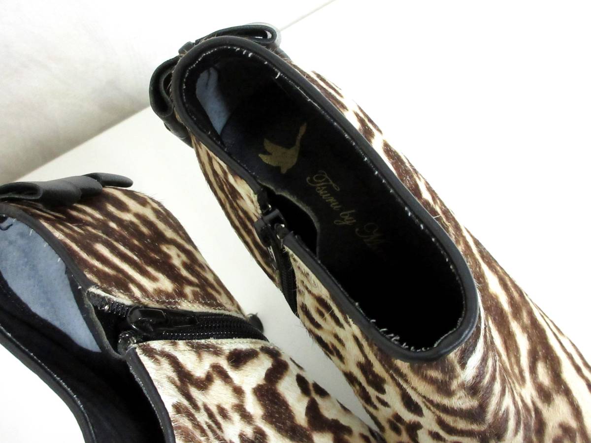 ツルバイマリコオイカワ TSURU by MARIKO OIKAWA ハラコ ブーティー ショートブーツ リボン 36 北393