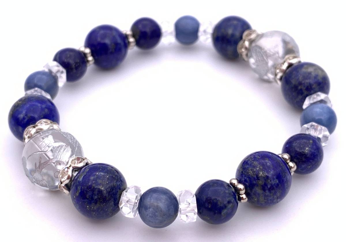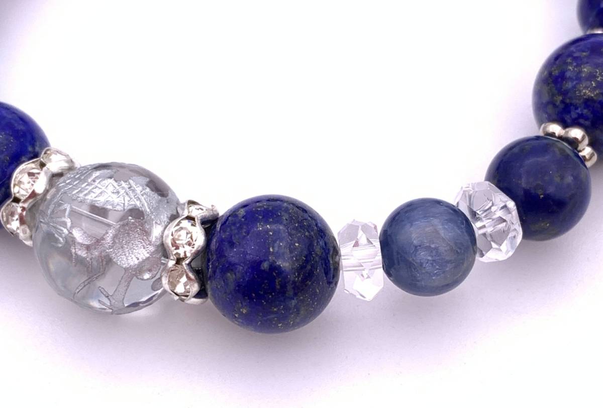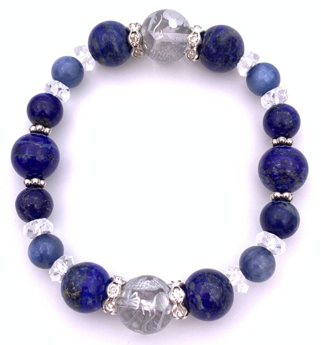手作り!オリジナル★天然石水晶銀彫り青龍12mm玉&ラピスラズリ&カヤナイトのブレスレット