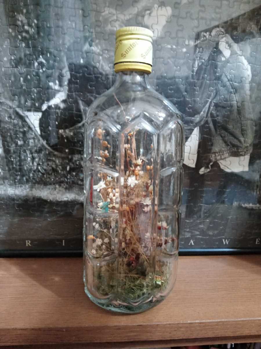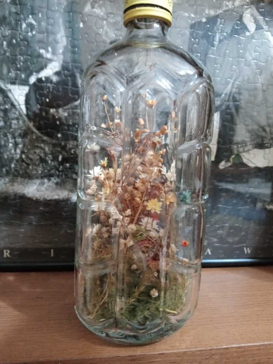 出品は サントリーのウイスキー720mlの便に入ったドライフラワーの出品になります