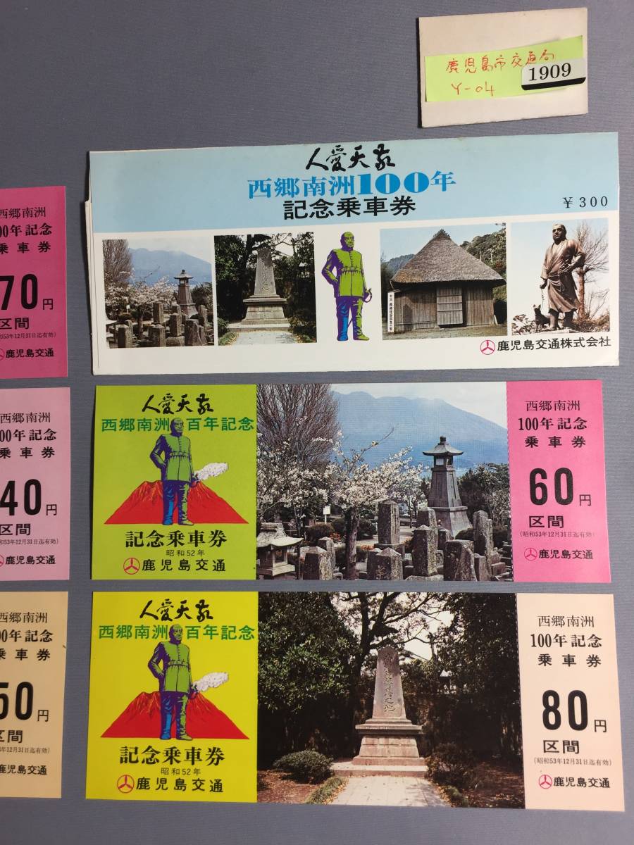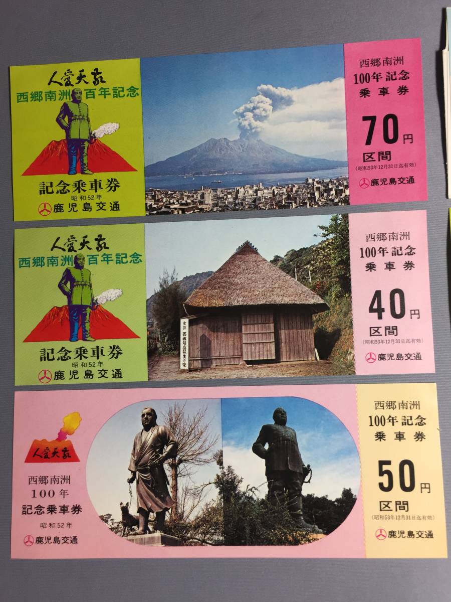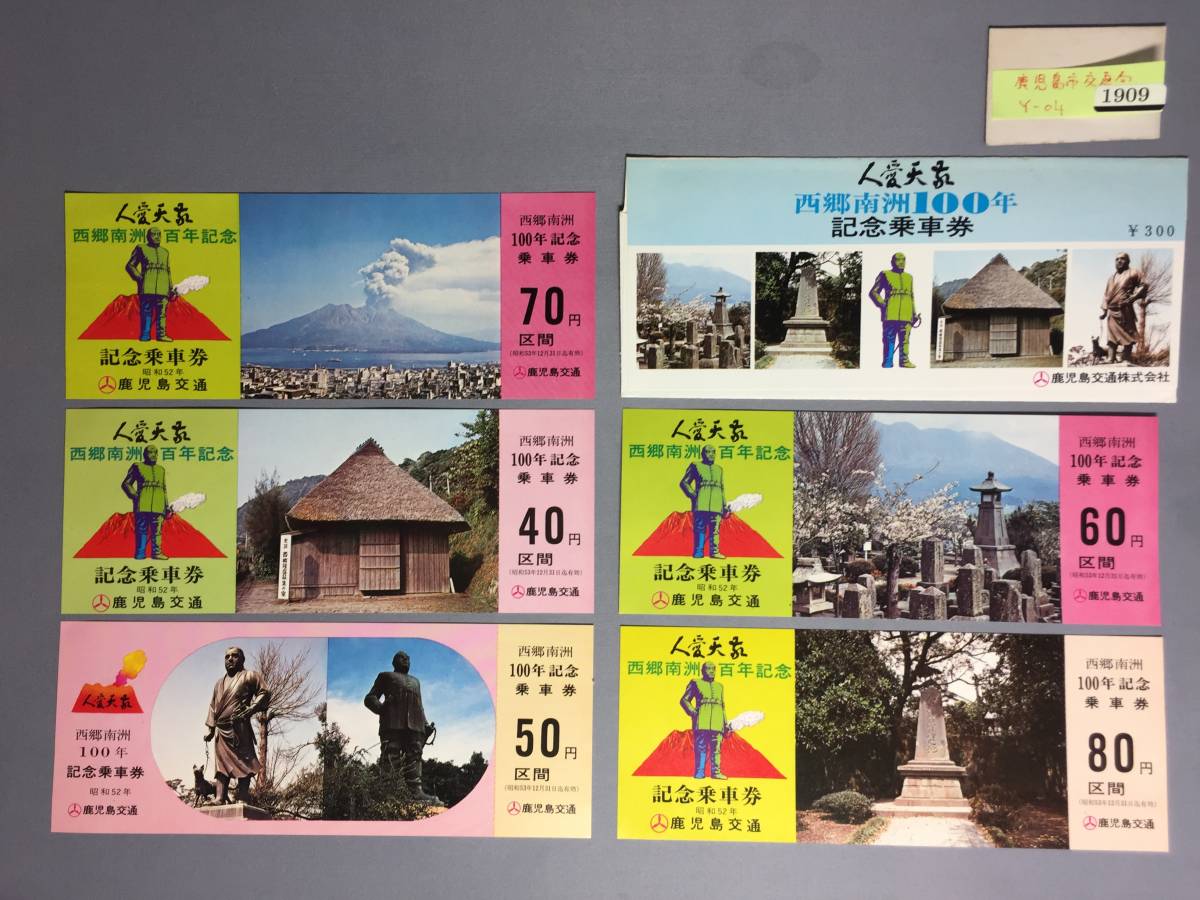 鹿児島市交通局 昭和52年 敬天愛人 西郷南州百年記念 百年記念乗車券5枚 【Y04-1909】