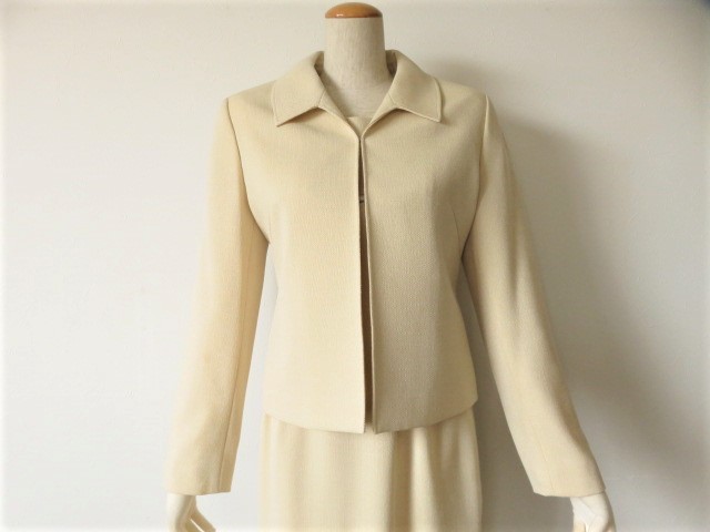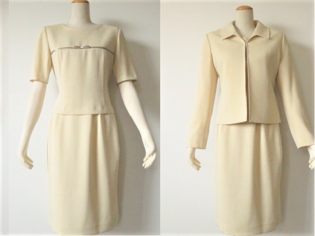 ■新品同様 上質美品【Craselia】クラセリア3点セットスーツ9号Mクリーム色セレモニースーツ ママスーツ s947